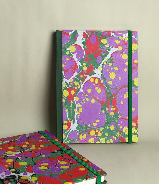 Carnet de notes marbré A5 - Rouge, jaune et lilas