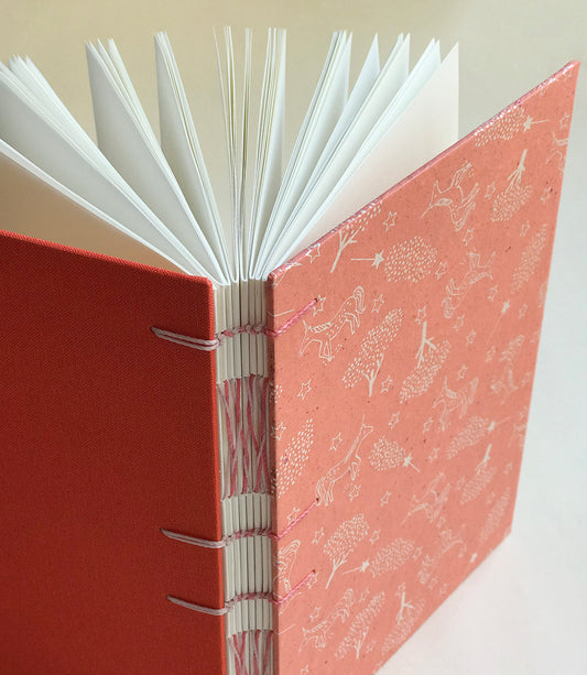 Les carnets sont faits avec une belle reliure extérieure qui donne un dos flexible et qui permet une ouverture à 360°. De jolies combinaisons entre les couleurs des fils et le dessin de couverture.